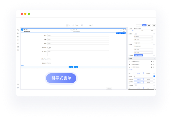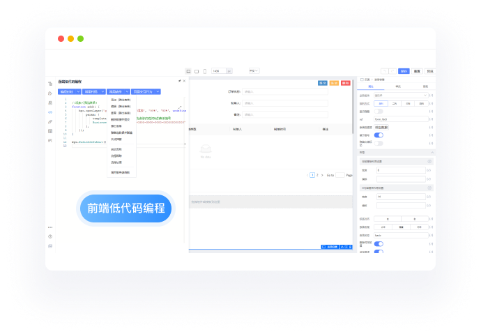 形式的校验,支持设计复杂页面,内置丰富的前后端编程模版。支持在线预览,支持多端设计及运行