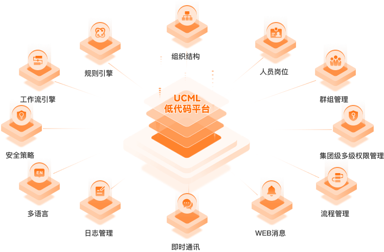 UCML低代码平台提供了一个WEB应用系统的基础架构及通用功能,包括工作流引擎、规则引擎、组织结构、岗位、人