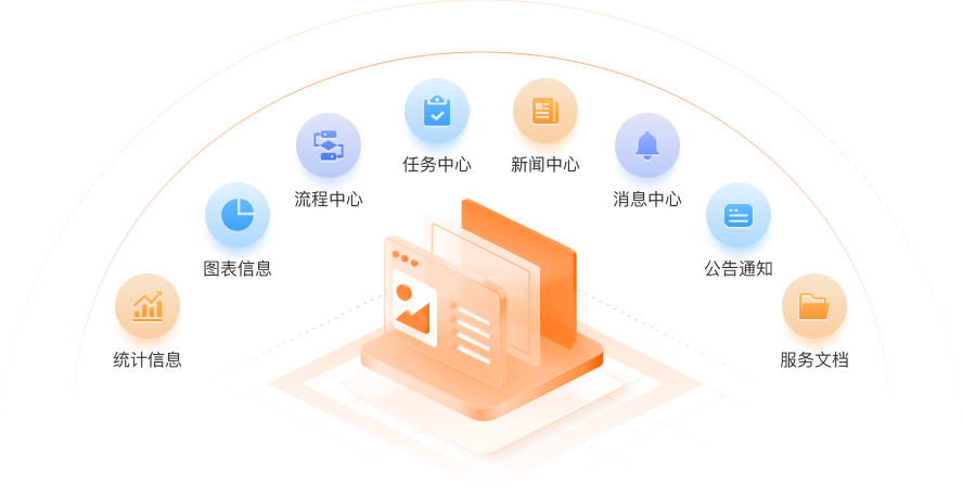 提供统一门户管理框架,实现多维门户设计,提供统一入口、统一任务中心、统一流程中心、统一消息、数据看板等,