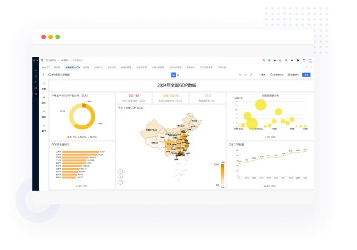 成数据大屏,并一键发布到菜单,内置有数据可视化分析工具。